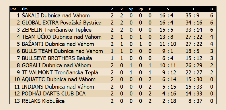 Dubnická liga klubov v šípkach 2025/26 - 25.ročník